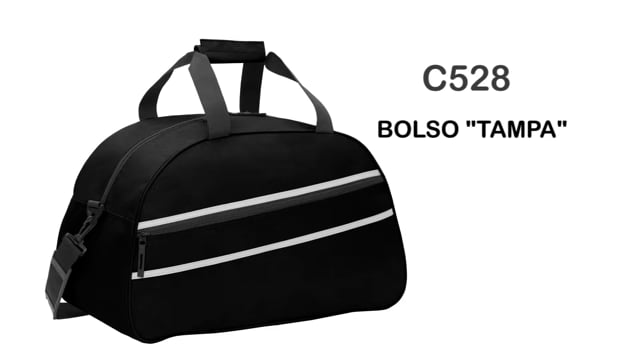 54,5 x 31 x 27 cm. Capacidad 45 litros. Poliéster 600D. Bolso deportivo. Correa ajustable y manijas reforzadas con cierre en velcro. Un bolsillo externo. Tiras reflectantes. En el compartimento principal cuenta con un bolsillo pequeño.