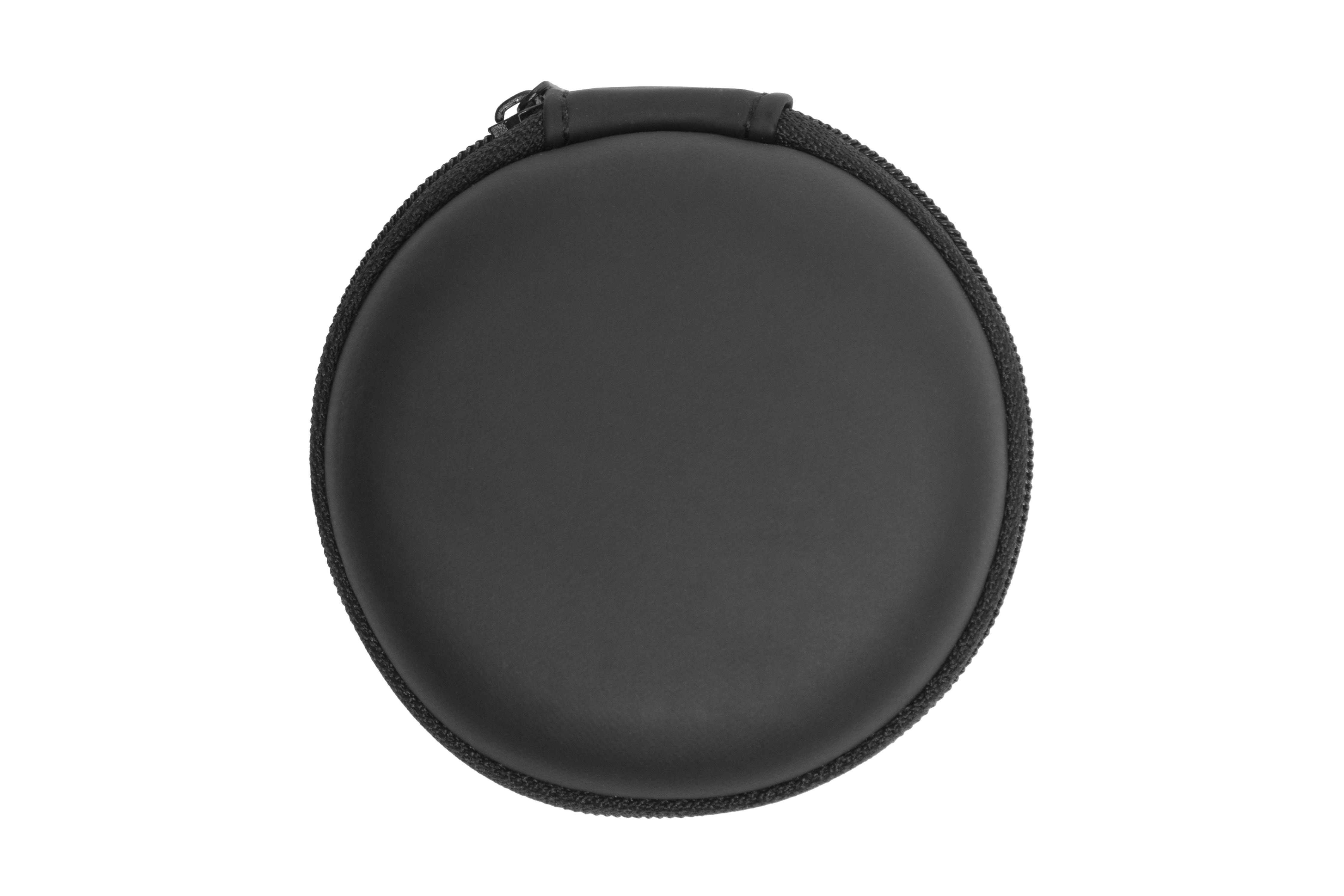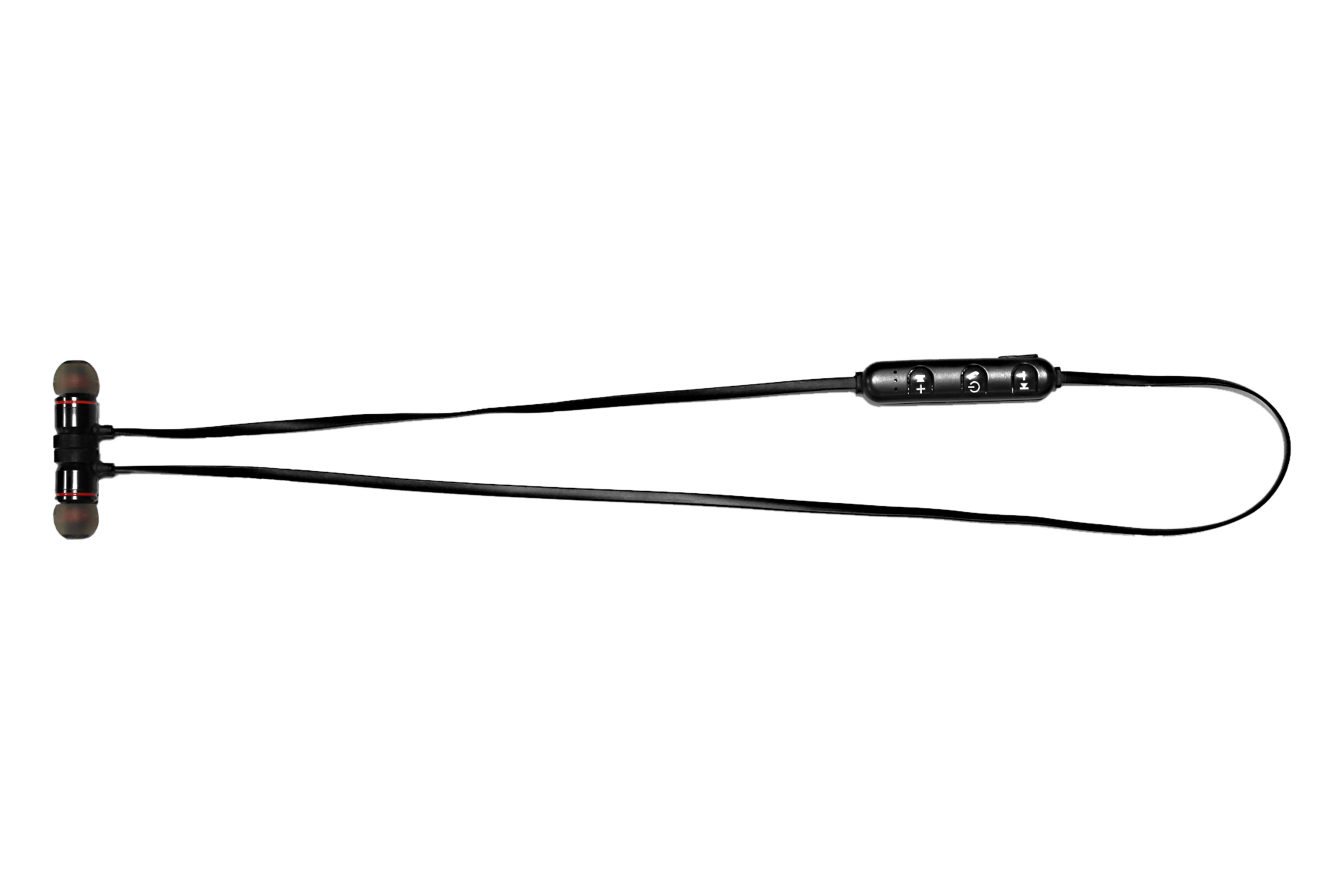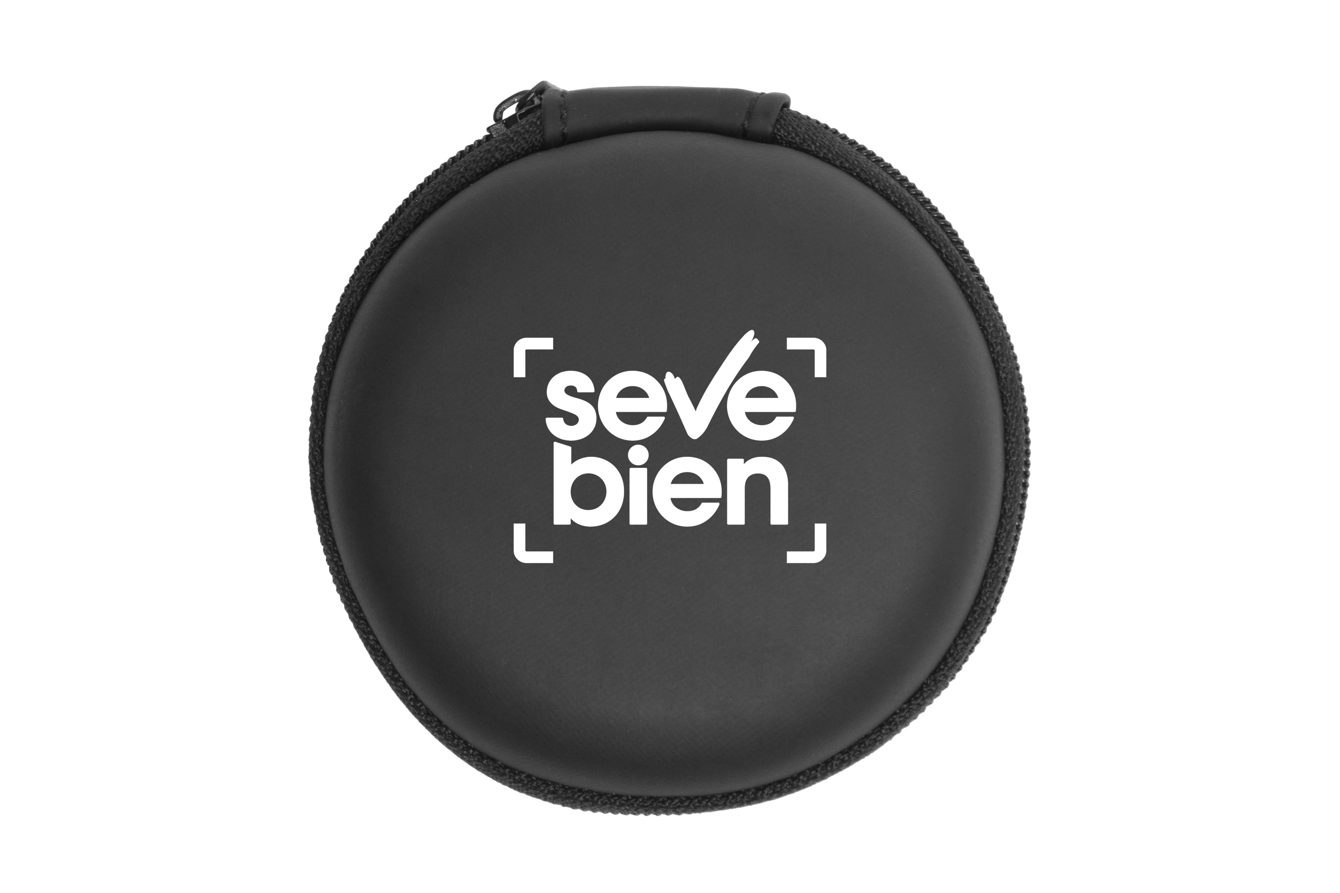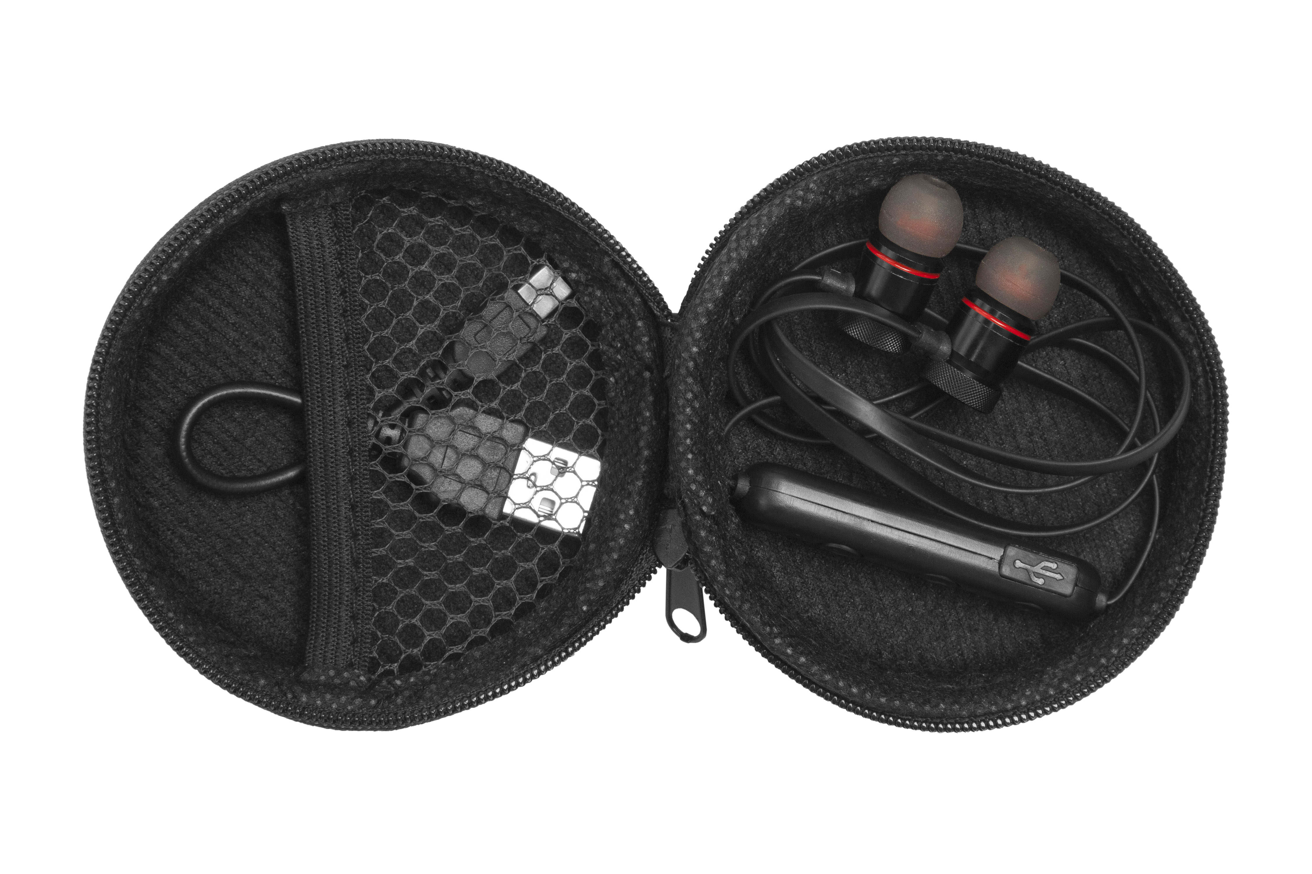 Plástico. Auriculares bluetooth. Cable de 70 cm aprox. Botones para aumentar / disminuir el volumen, aceptar y rechazar una llamada. Los audifonos son imantados. En uno de los costados entrada mini usb para recargar la batería. Estuche redondo de Eva Pouch. Incluye repuestos para los audífonos.