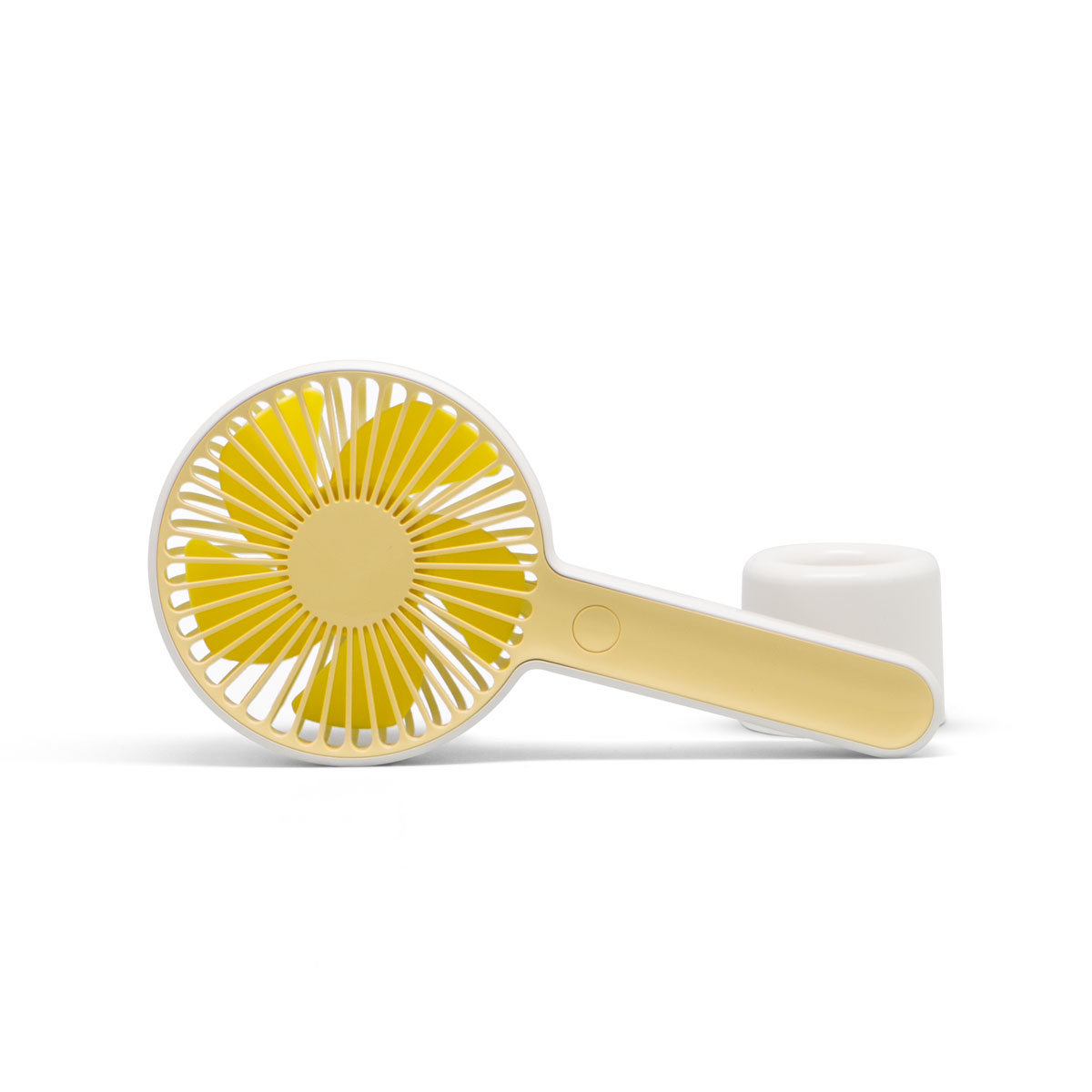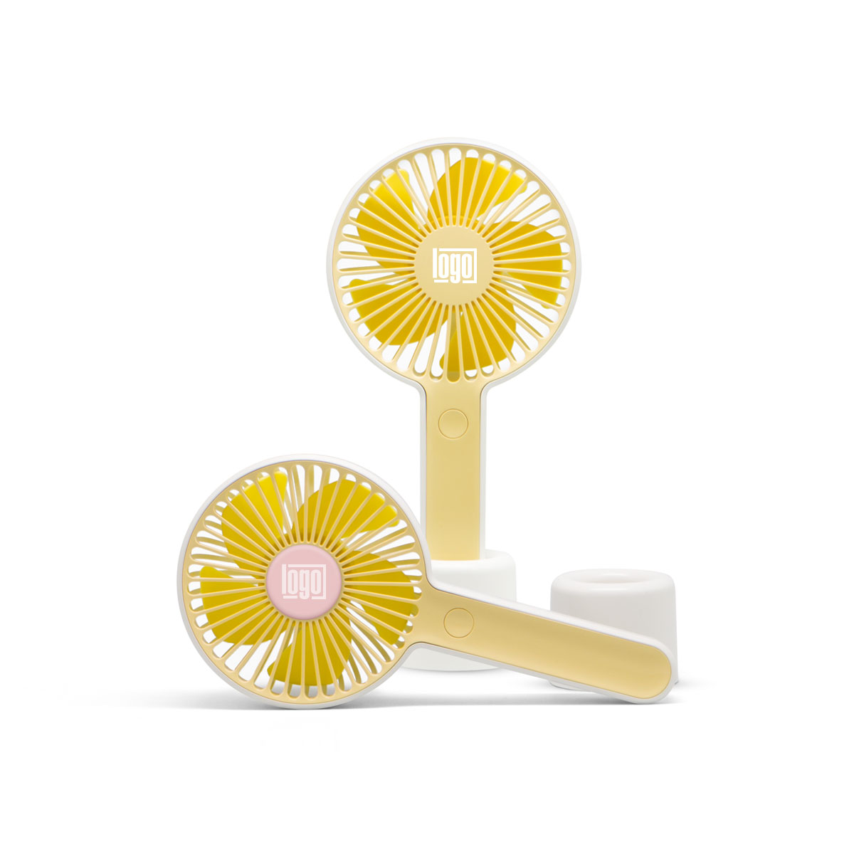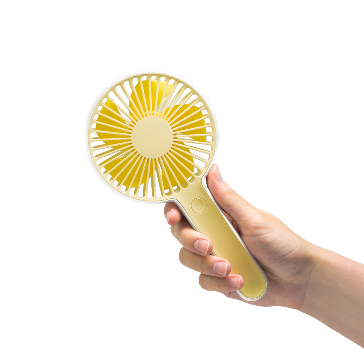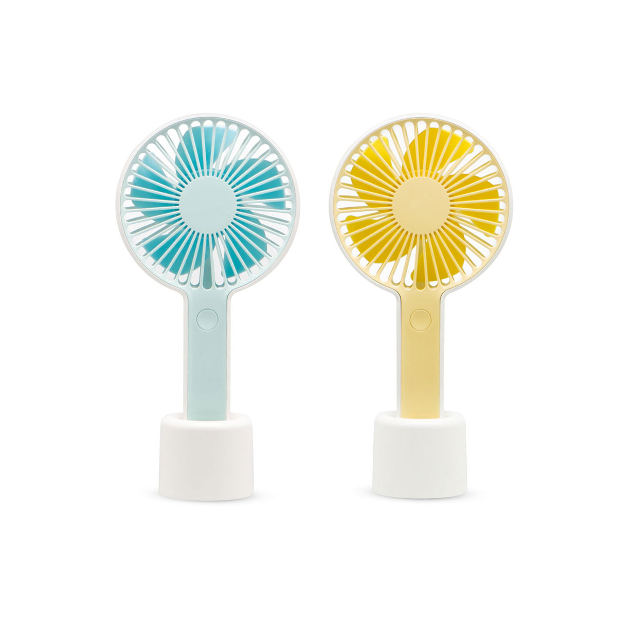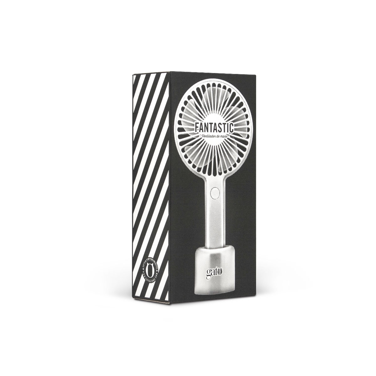 Ventilador de mano portátil con carga USB y tres velocidades. Ideal para llevar en la cartera o mochila.