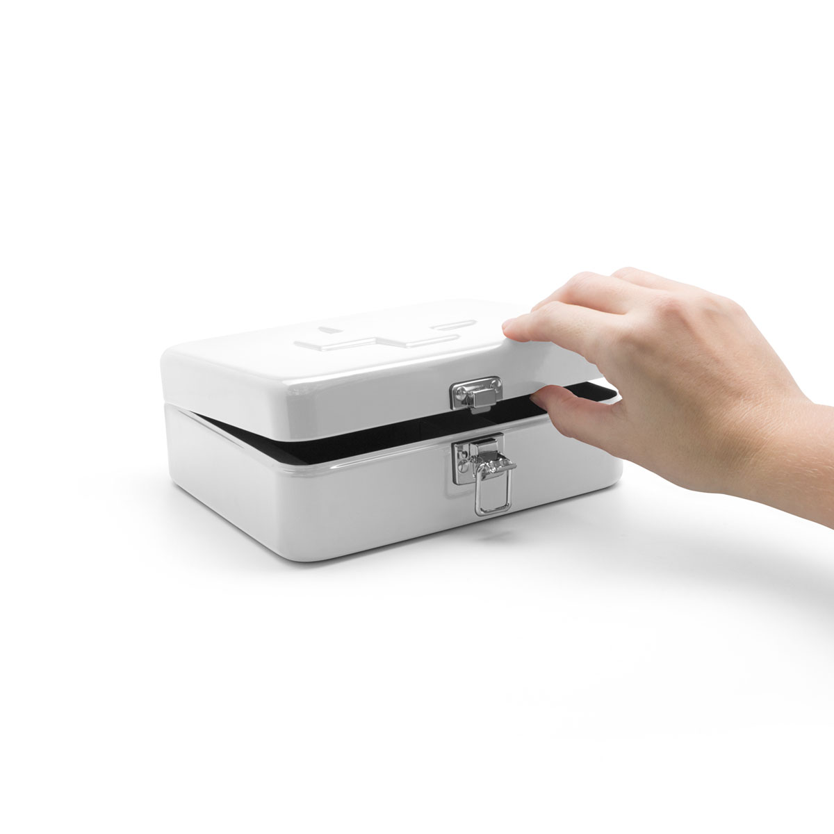 19,5 x 15,5 x 7 cm. Metal. 3 compartimentos. First Aid Kit. Botiquín metálico con compartimentos para guardar todo lo que no puede faltar ante una emergencia. Presentación en caja de regalo.