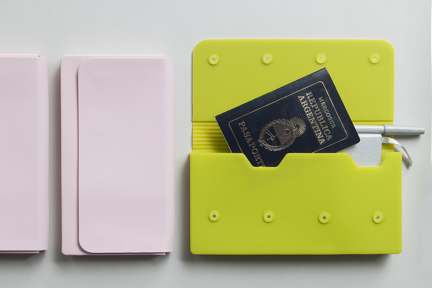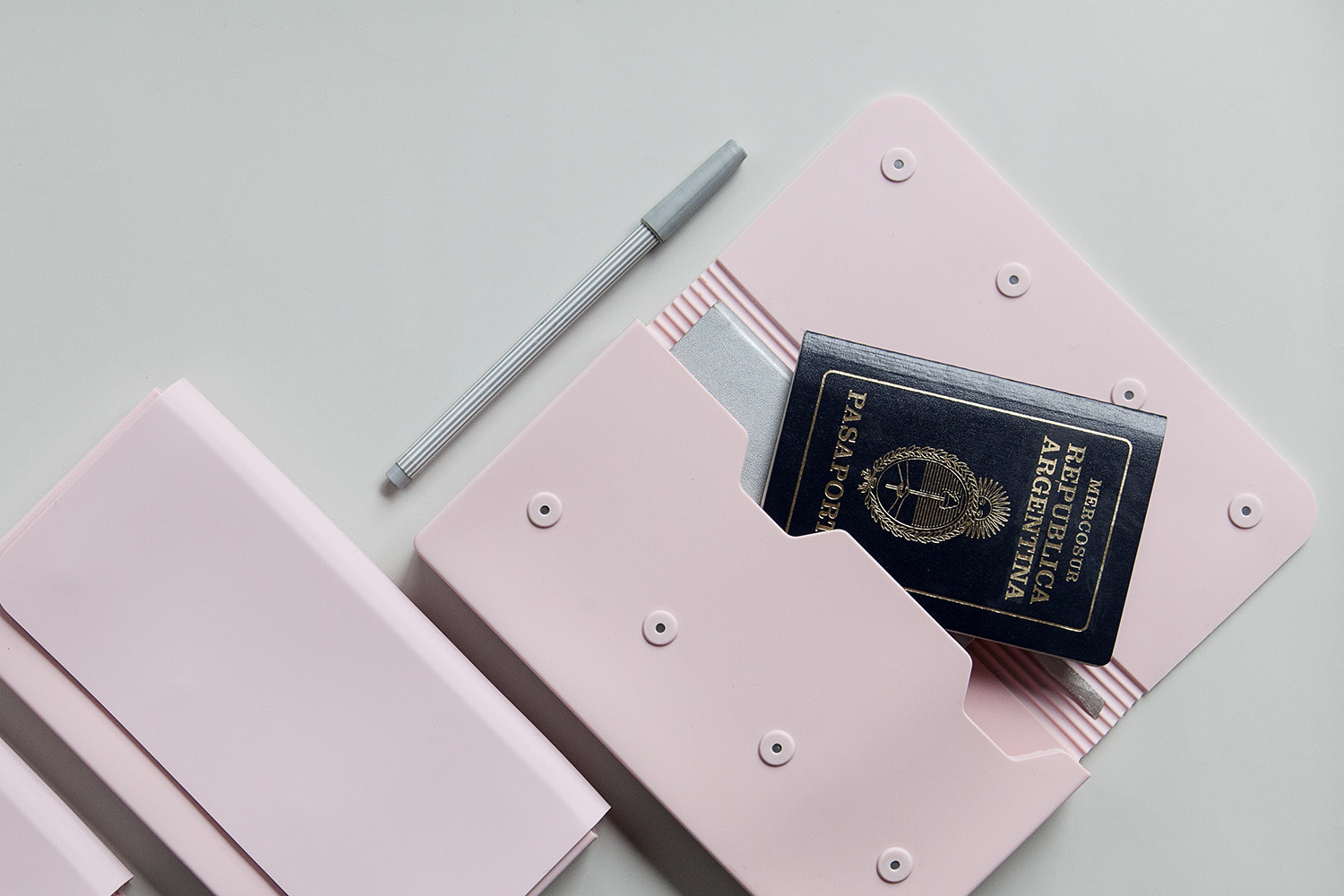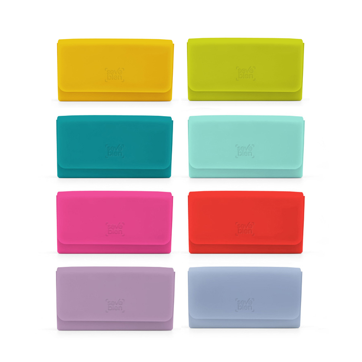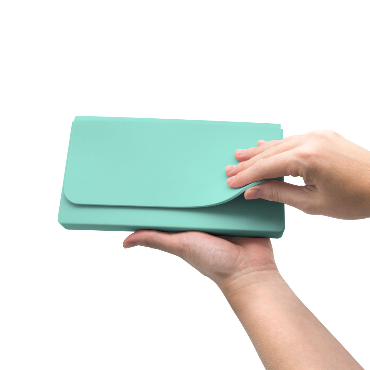 22 x 12 x 2 cm. Silicona. Sobre de silicona. Para llevar documentos, papeles importantes, tarjetas, mapas, los papeles del auto y mucho más. Ideal para viajes. Tapa plegable, 3 compartimentos y cierre con imán. Presentación en caja de regalo.