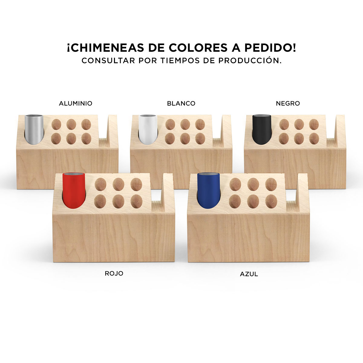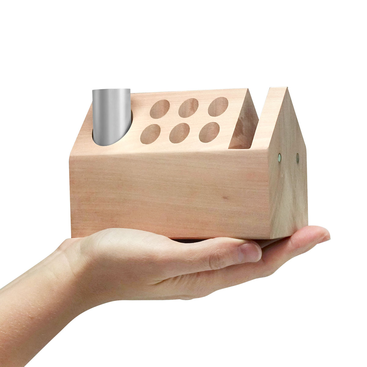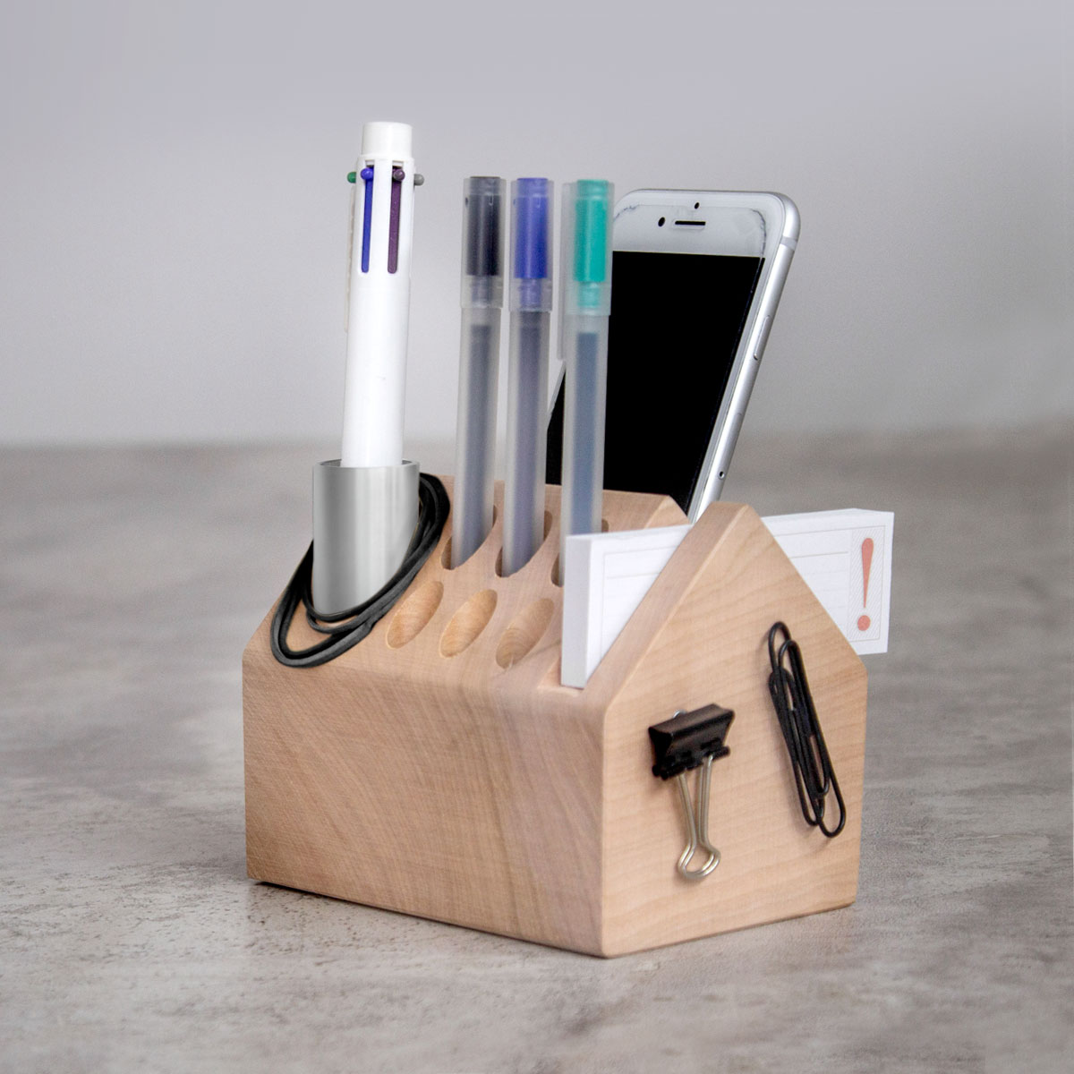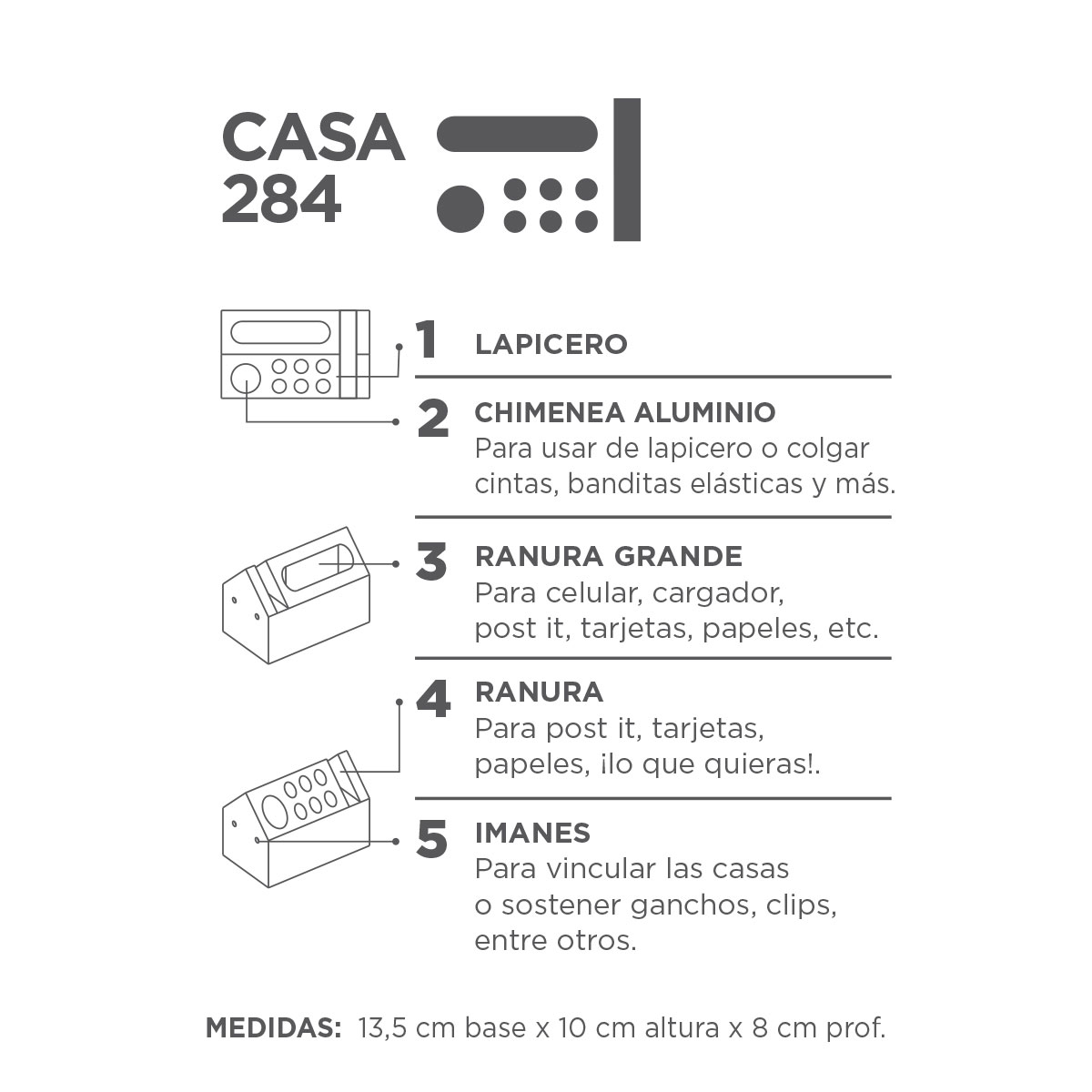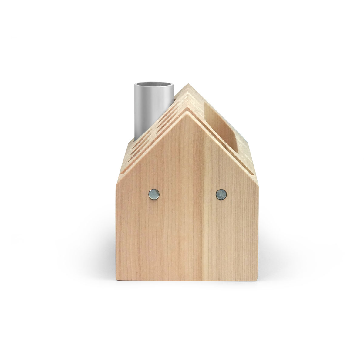 Madera Lenga Maciza y Aluminio. 13,5 x 9,5 x 8 cm. Imanes para combinarlas entre si. Casita organizadora de escritorio.