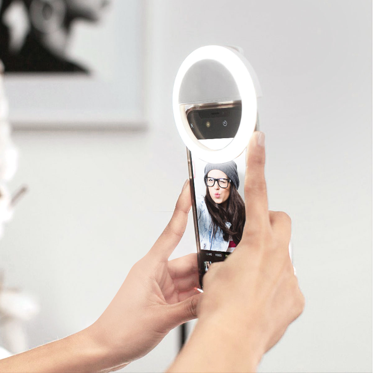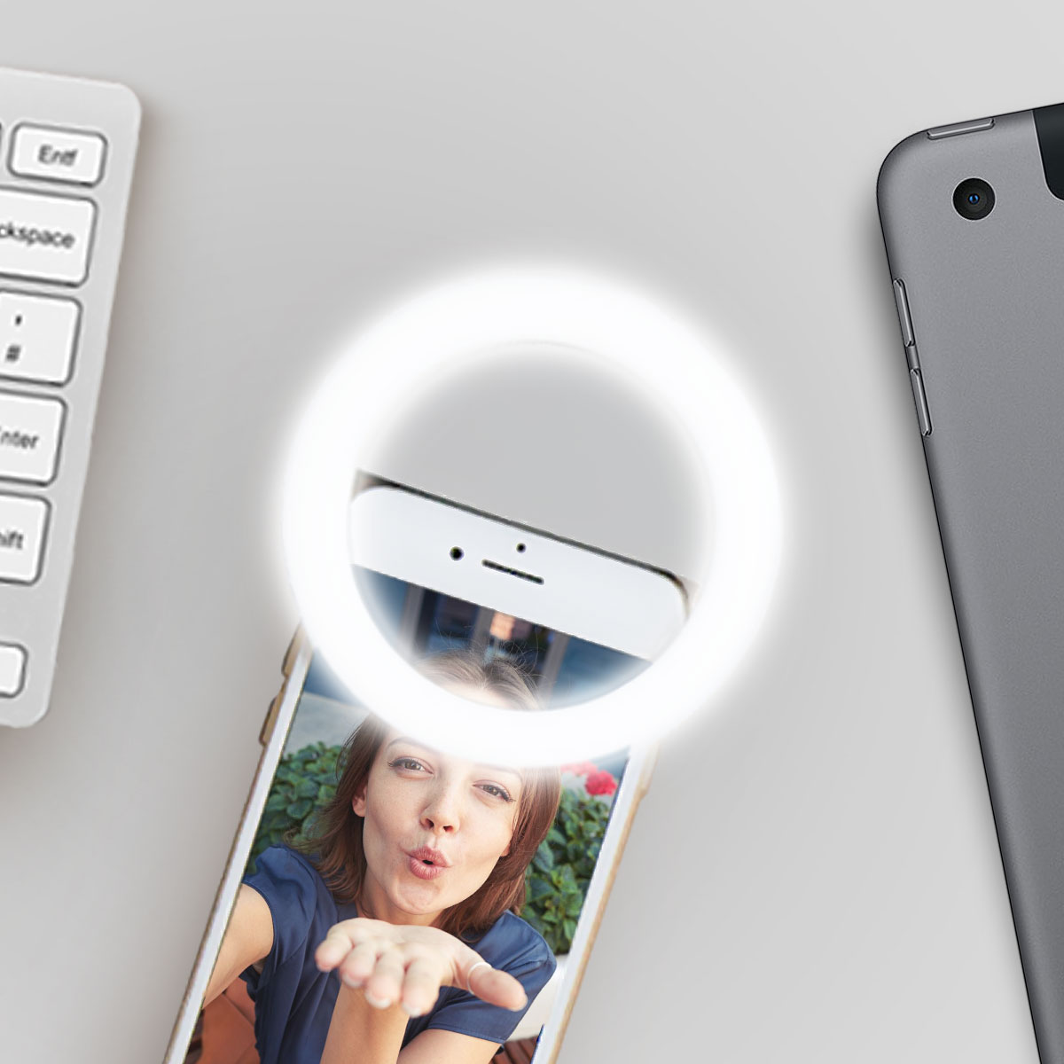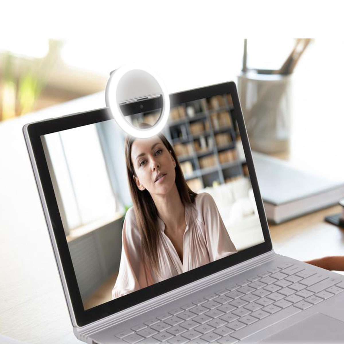 Mini Ring Light. Clip de luz portátil con 36 luces led, 3 intensidades y carga usb. Chico, fácil de transportar y duración de 1 hora en potencia media.