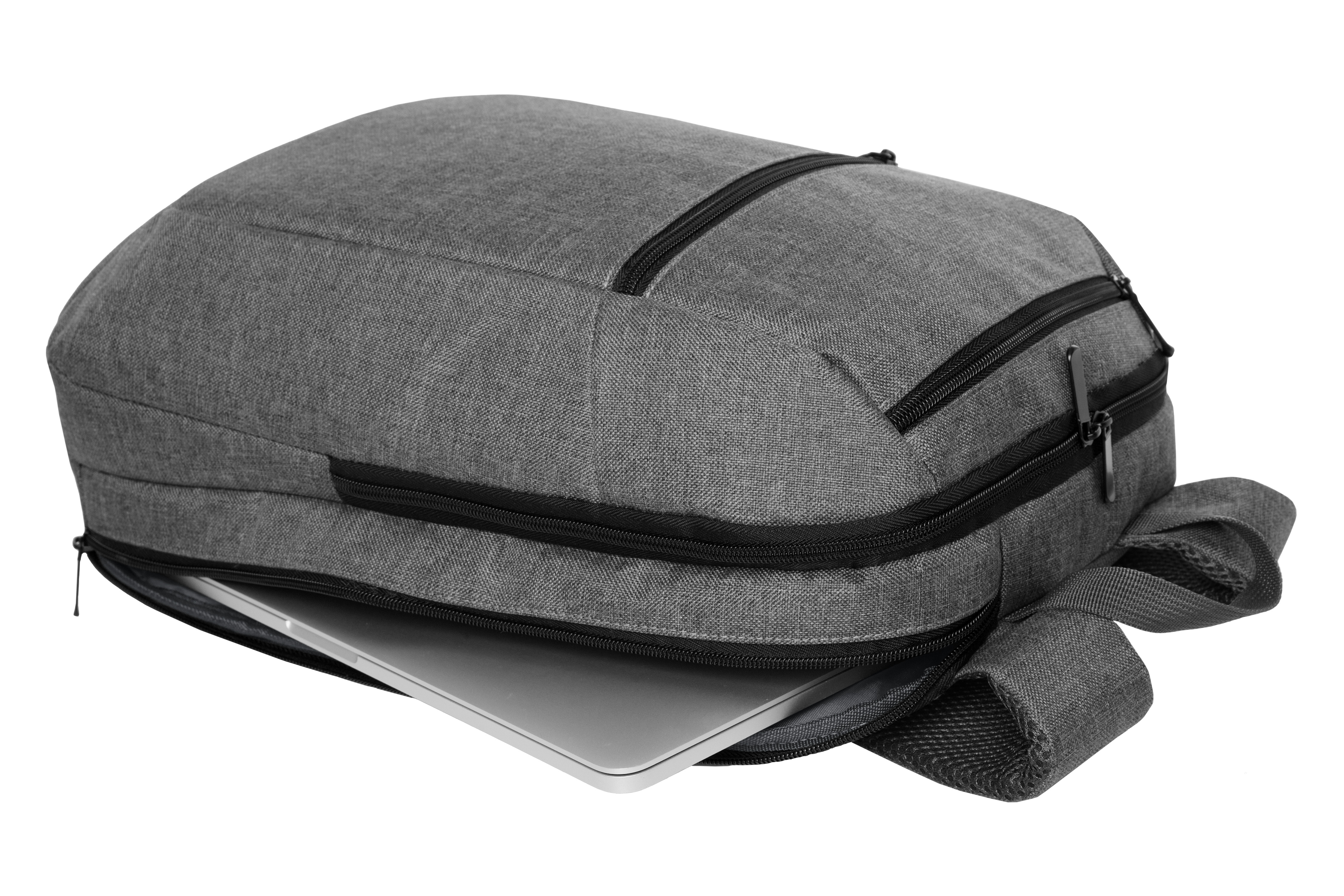 33 x 46 x 12 cm. Capacidad 18 litros. Polycanvas. Mochila portanotebook con 2 bolsillos frontales. Compartimentos acolchados y aireados, uno para laptop de hasta 16" con apertura lateral y otro amplio principal. Correas ajustables y espalda con red acolchadas. Tiradores de cierre metálicos.